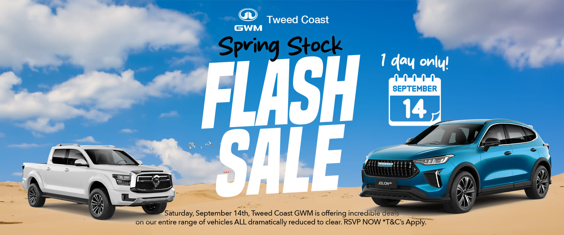 Get ready for the automotive event of the season! It's the Spring Stock Flash Sale at Tweed Coast GWM!