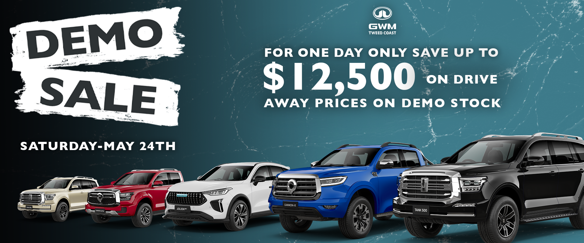 Saturday, May 24th - It's the event you’ve been waiting for. For one day only, Tweed Coast GWM is clearing the floor with unmissable deals across 30+ registered demo vehicles - all priced to move.
